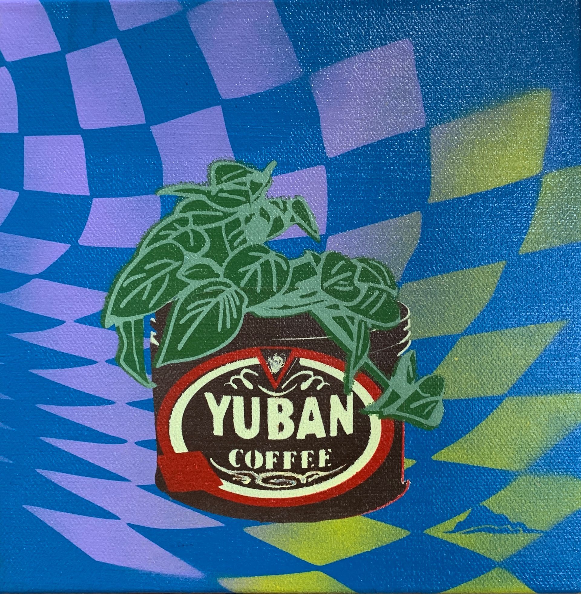 Spray paint and acrylic on canvas, 8” x 8”, 2017.